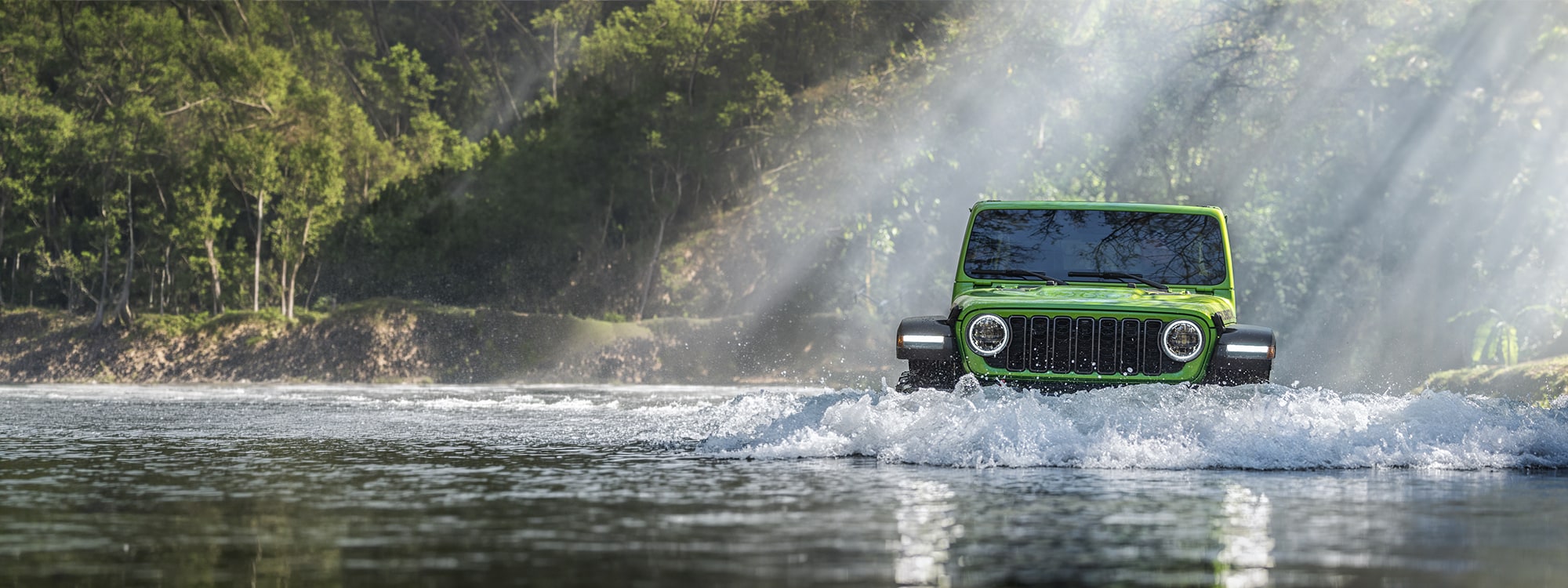 The Wrangler offers impressive water fording capability of up to 30 inches, with sealed electrical connections and a high air intake position.